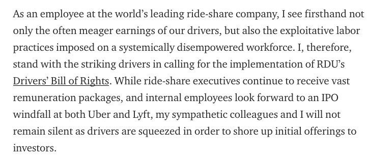 : hoo boy. "I am an Uber employee and I support the drivers’ strikes."