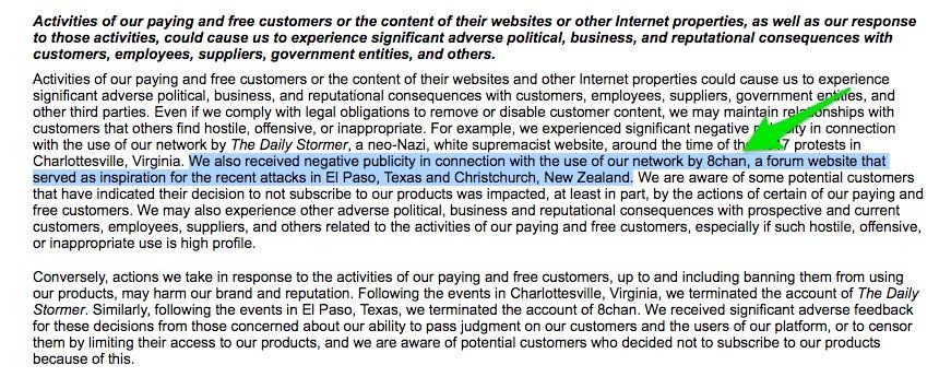 : from Cloudflare, this has to be a S-1 Risk Factor first