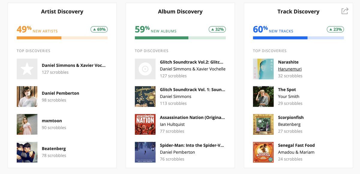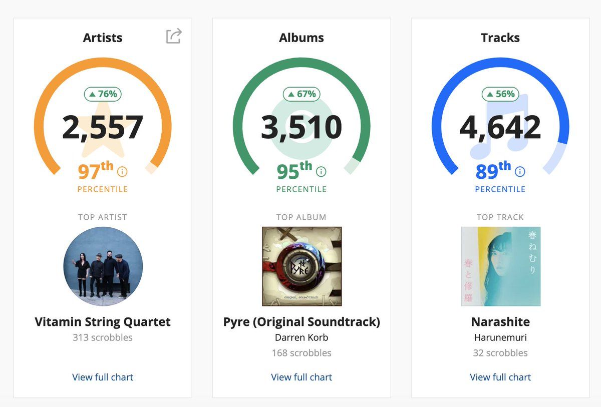 Oh boy my Last fm 2019 listening report is ready! I've got some good feels and some bad ones about it. I've spent a chunk of last year trying to really widen my musical tastes and try things outside my comfort zone. Some weeks I've been very successful...