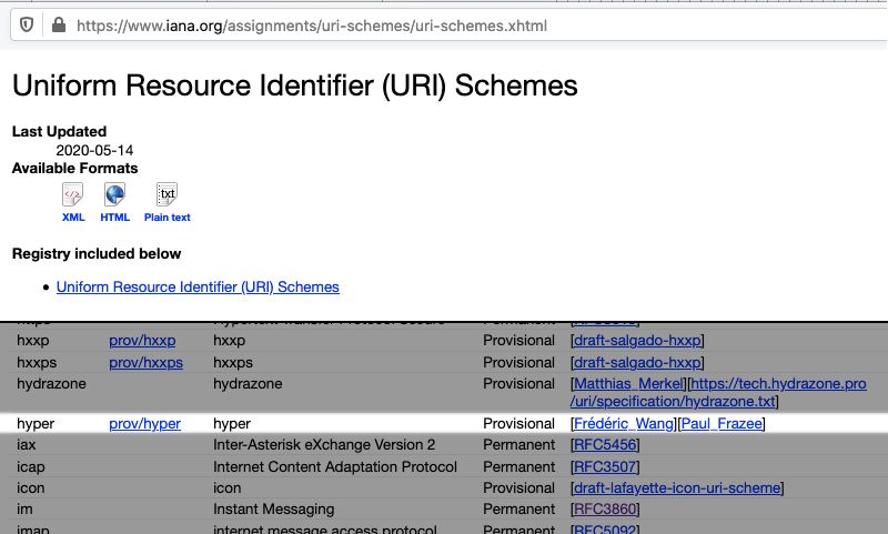 : This is fun, we're in the IANA URL registry. Thanks to Frédéric Wang for making that happen.