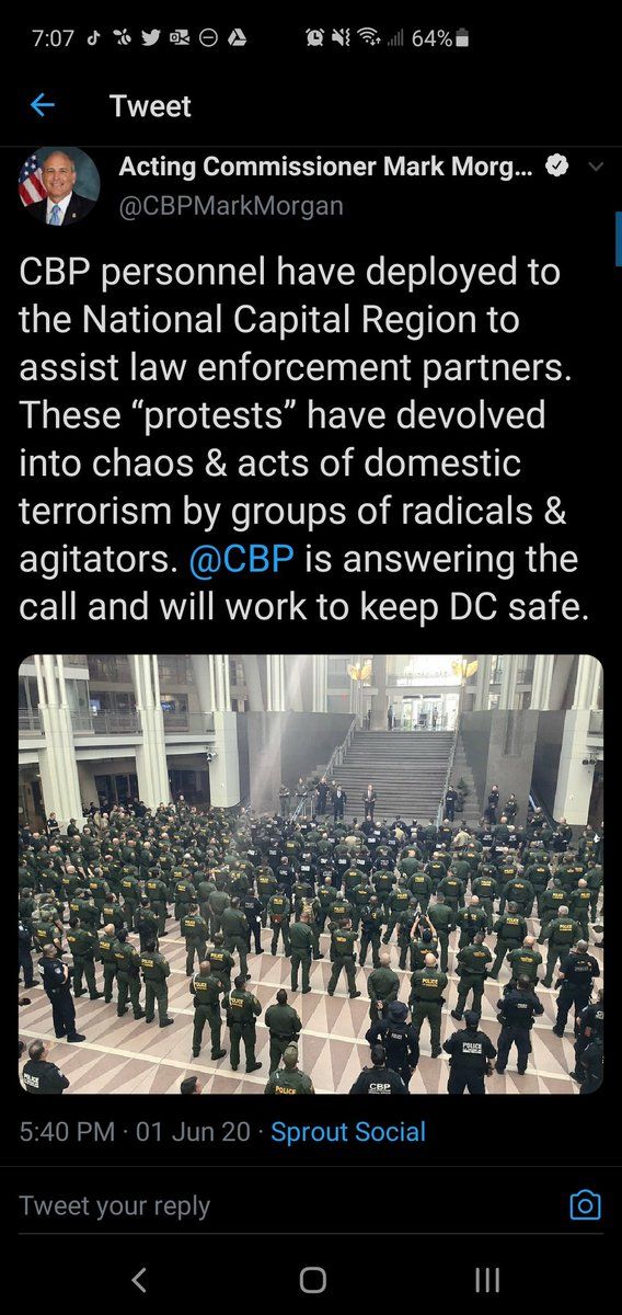Congrats you just helped schedule and share the perfect image of our out of control border agency accusing peaceful protesters of being domestic terrorists. That's one for the investor quarterly call.
