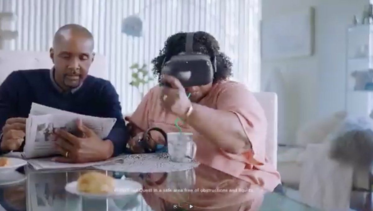 It doesn't have a warning on the final frame, but worth noting, you likely also shouldn't use the Oculus device that blocks your vision and causes you to move around while wearing socks on a hardwood floor.