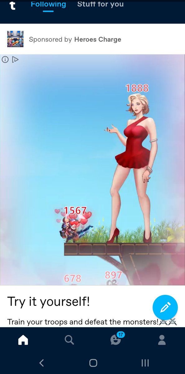 FAN ads on Tumblr have started showing game ads that, I must assume, are built by a fetishist with a thing for being stepped on by giant women. So I guess this one is on brand for Tumblr.