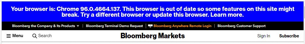 I'm actually a little jealous. I wish I could get away professionally with not supporting any browser older than 4 months (only 2 major version numbers from current Chrome!), good on whatever engineer managed to get away with that over at Bloomberg.