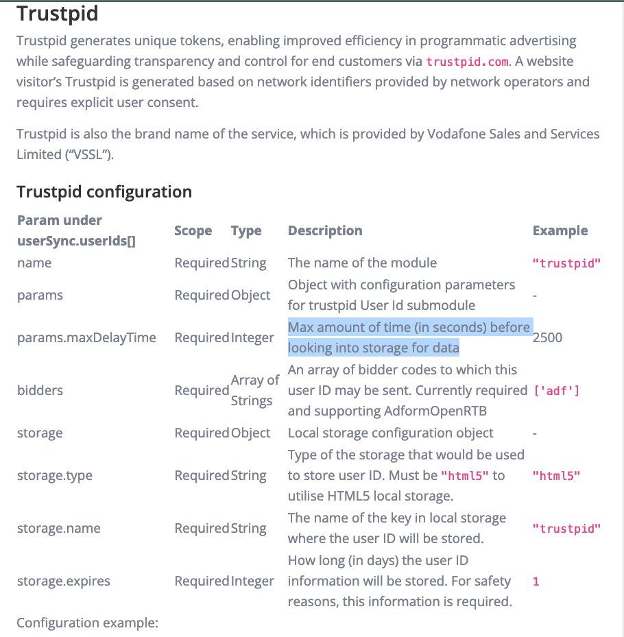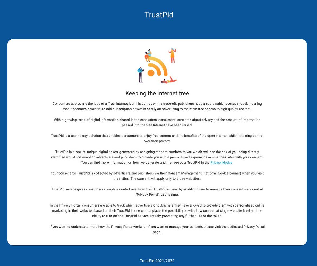 Worth noting that Trustpid's per-site compliance mechanism appears to be working with CMPs which means that you could deny consent for Trustpid to be used on the page but the nature of TCF means that the ID will still be sent but with a string saying 'hey, don't use this'.