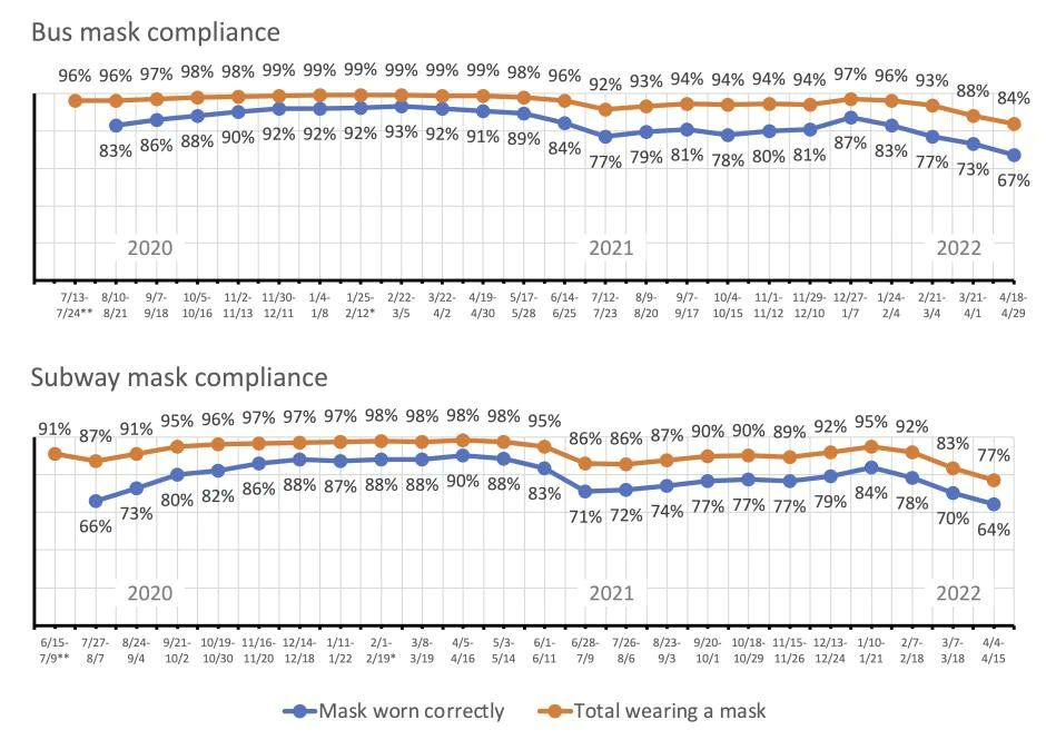 As COVID is spiking in NYC, mask compliance on the subway is at its lowest in over a year.