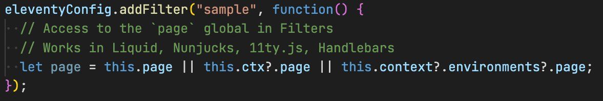 pagedata from inside your universal filter. Compatible with all Universal Filter template languages 🥳 11ty.dev/docs/filters/#universal-filters -