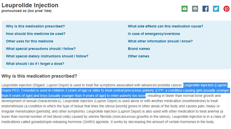 berk_hamstead Mckenzi79691567 StuntLoverAudio 436bGliese ChloeAngyal Once again... you have failed to read your own link: "Leuprolide injection (Lupron Depot-PED, Fensolvi) is used in children 2 years of age or older to treat central precocious puberty..."