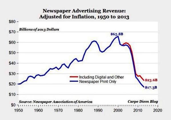 : Newspaper revenues are +50% down in just the last 5 years alone... :