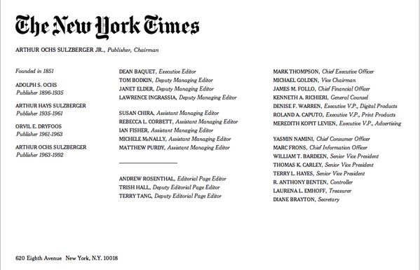 : The New York Times has already updated its masthead