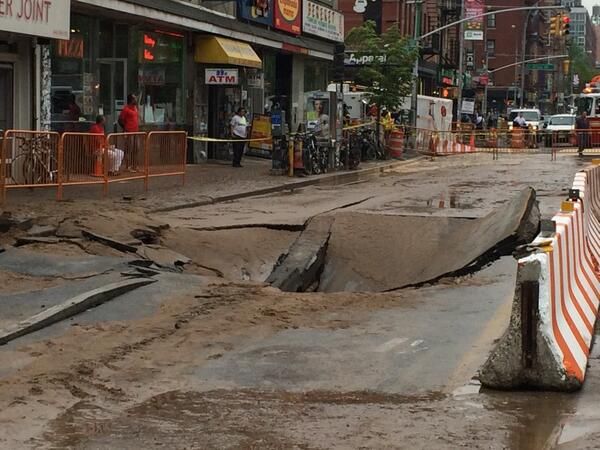 : Street collapsed in front of Katz #nypd #LES #toomuchpastrami