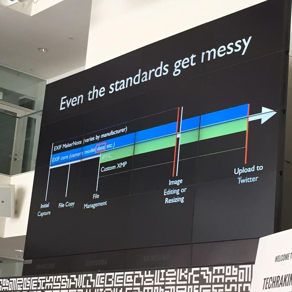 : There are standards for metadata in images but it can get messy, says Connor. #techraking