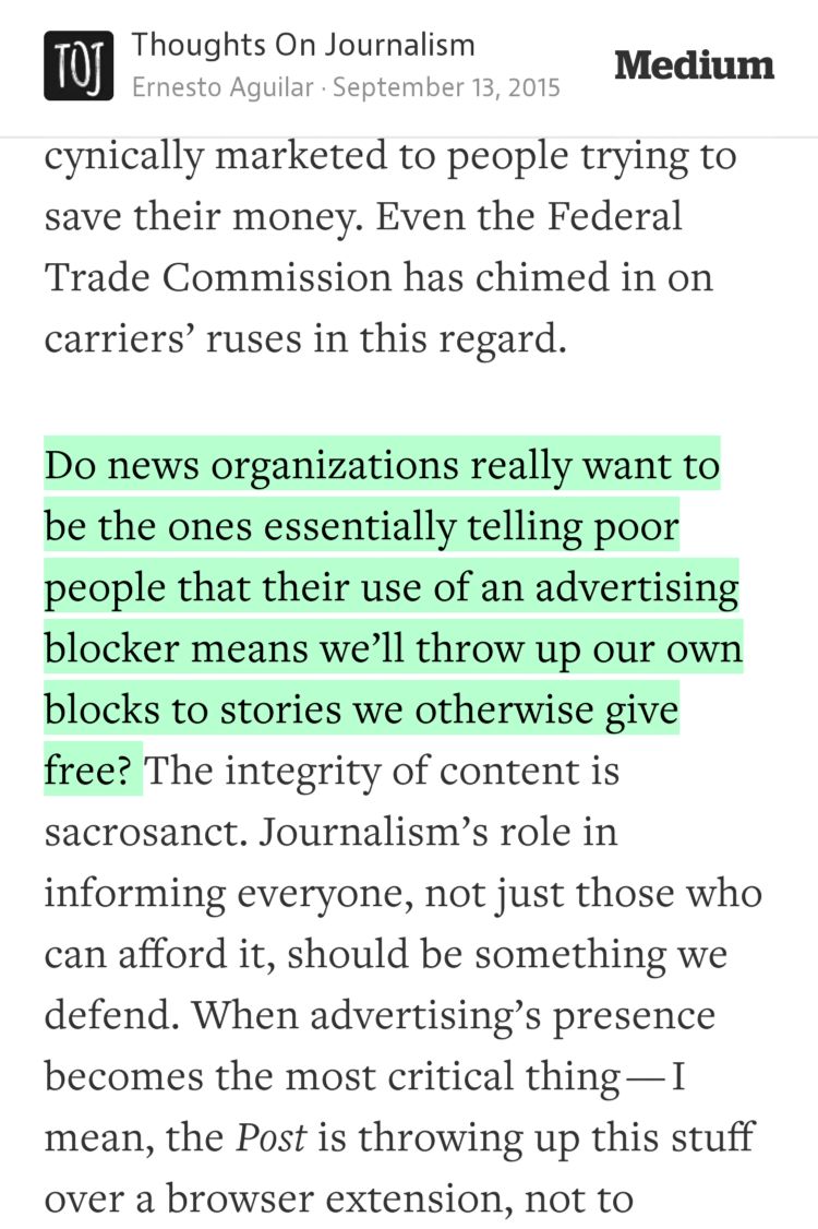 Do news orgs really want to start policies that close access to the poor? from eaXLR medium.com/thoughts-on-journalism/anti-ad-blocking-as-a-class-issue-45cf046c3736?source=tw-226507b3d33e-1442258275017#fba7--share-0-193