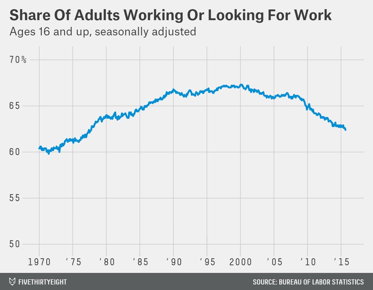 : The share of adults working or looking for work is at its lowest level since 1977.