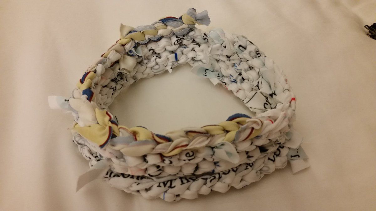 : My knit cowl from strips cut from fabric posters at #aas227 #makeaas #hackaas