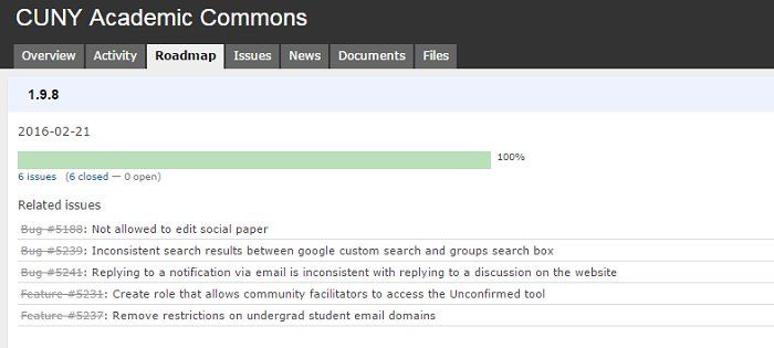 : We’ve just released version 1.9.8 of the CUNY Academic Commons