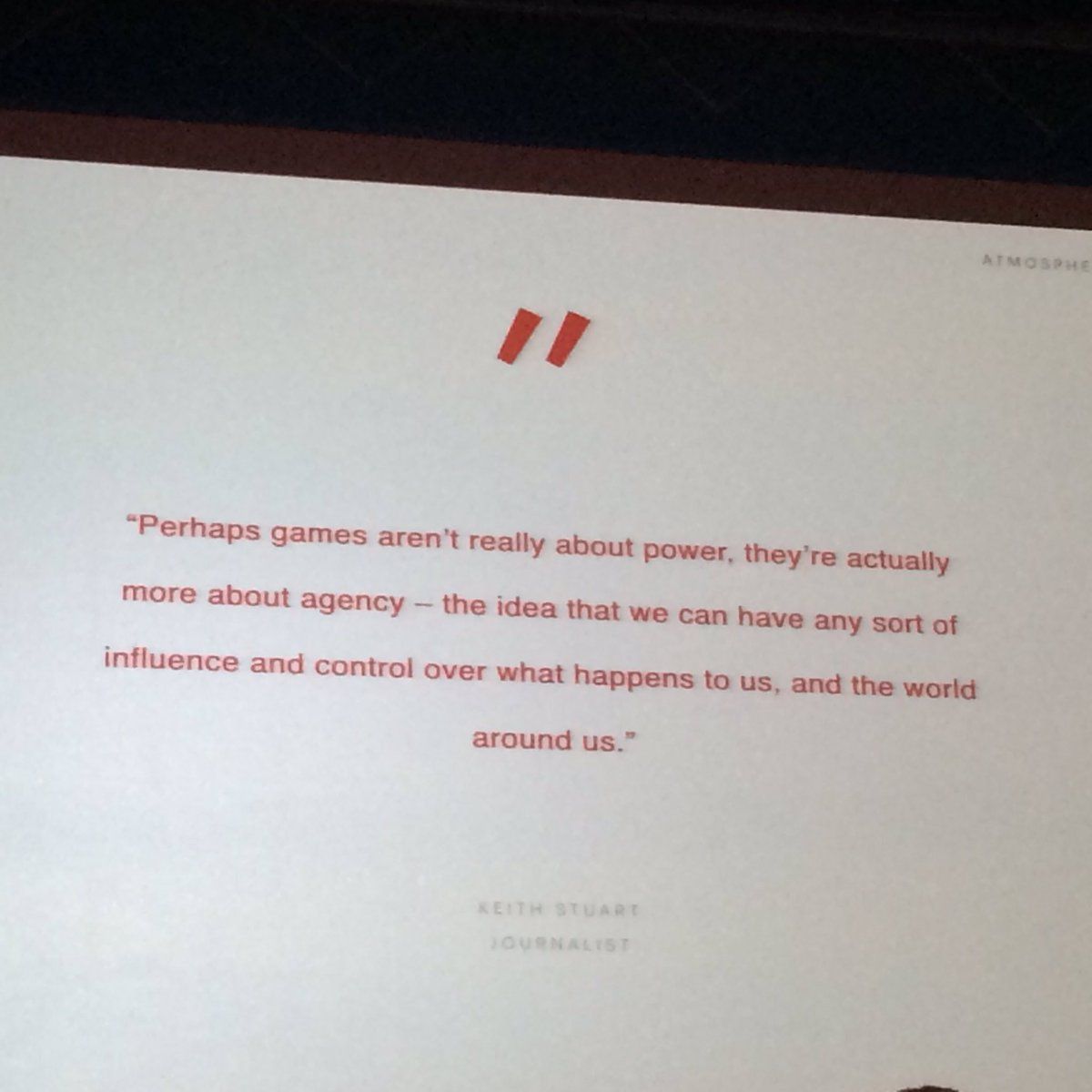 : "Games aren't really about power but more about agency" #Killscreenfest